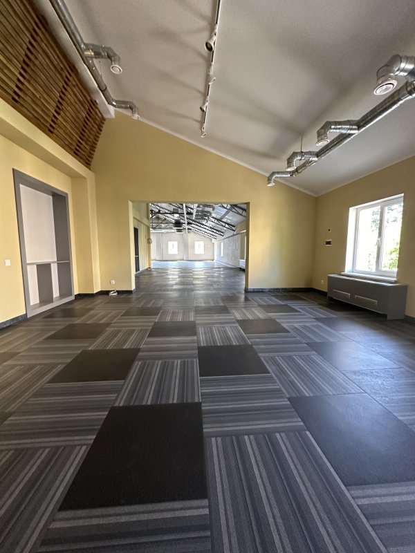 На полу специальное покрытие, соответствующее требованиям к покрытиям для спортивного зала. Залы оборудованы системой кондиционирования с регулятором температуры – фанкойлы.