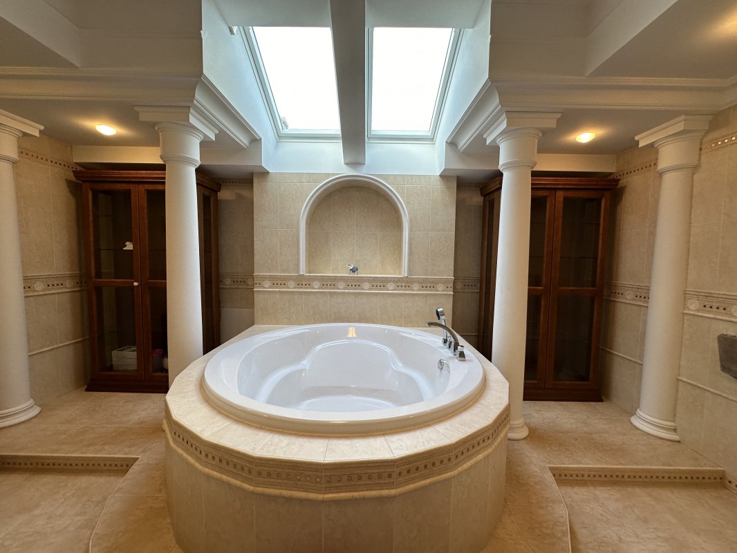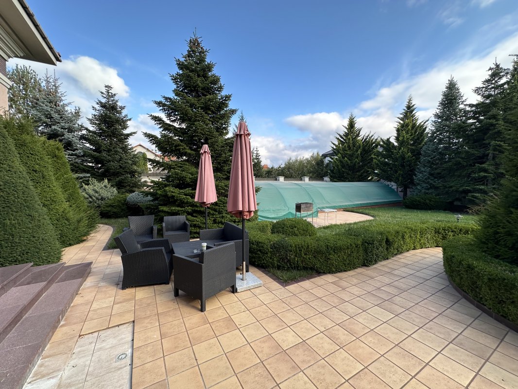 15 соток земли, 25 м уличный бассейн, 700м дом, баня, трен. зал, джакузи, хамам, винный погреб, гараж на 2 авто, ландшафтный дизайн, кухня-студия, столовая, кабинет, 3 мастер спальни со своими гардеробными и санузлами